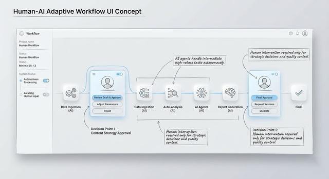 Agent介入之后:你告诉Agent”帮我协调设计和开发,在周五前完成这个需求的视觉稿和技术方案”。它自己分配任务给对应的Agent节点,追进度,在出现阻塞时主动上报,在所有节点完成后给你一份交付确认。你在中间最需要判断的那个时刻被叫醒,其余时间,你不需要待机。